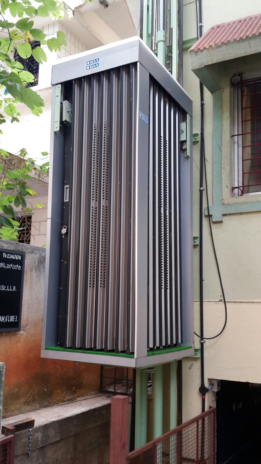 - Its a unique vertical moving Hydraulic device suitable for villas, Independent house, Duplex house and Multistoreyed house.